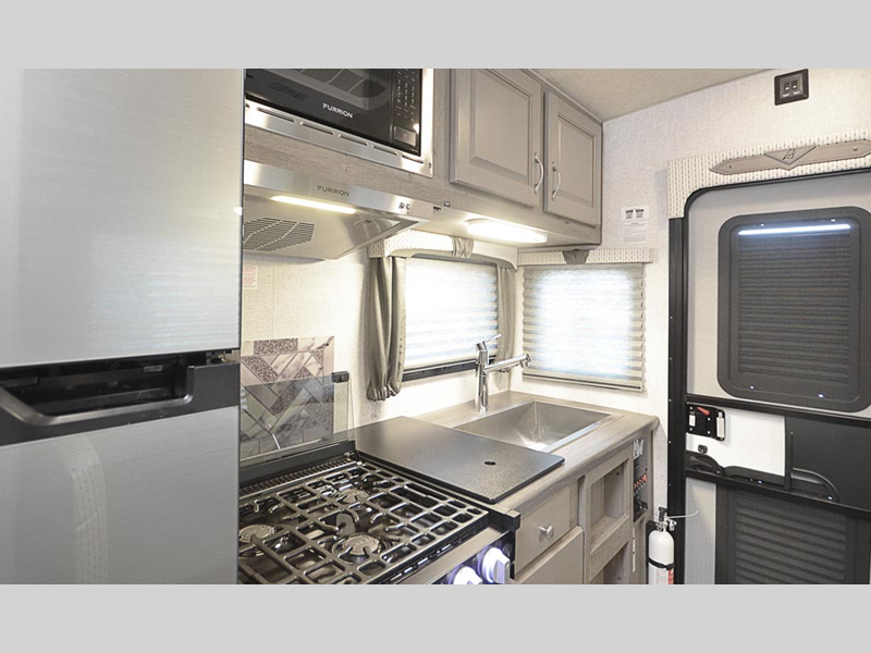 Sleeps 3 Slides 1 Length 17 ft 10 in Ext Width 8 ft 1 in Ext Height 8 ft 7 in Int Height 6 ft 7 in Interior Color Moonstone, Carbon Dry Weight 3235 lbs Fresh Water Capacity 46 gals Grey Water Capacity 39 gals Black Water Capacity 37 gals Furnace BTU 20000 btu Available Beds RV Queen Refrigerator Type 12V Refrigerator Size 8 cu ft Cooktop Burners 3 Number of Awnings 1 Floor Length 10 ft 2 in LP Tank Capacity 30 lbs Water Heater Capacity 6 gal Water Heater Type DSI Gas/Electric Quick Recovery Awning Info Electric with LED Lights Number of LP Tanks 2 Body Style Hard-Side Shower Type Standard -