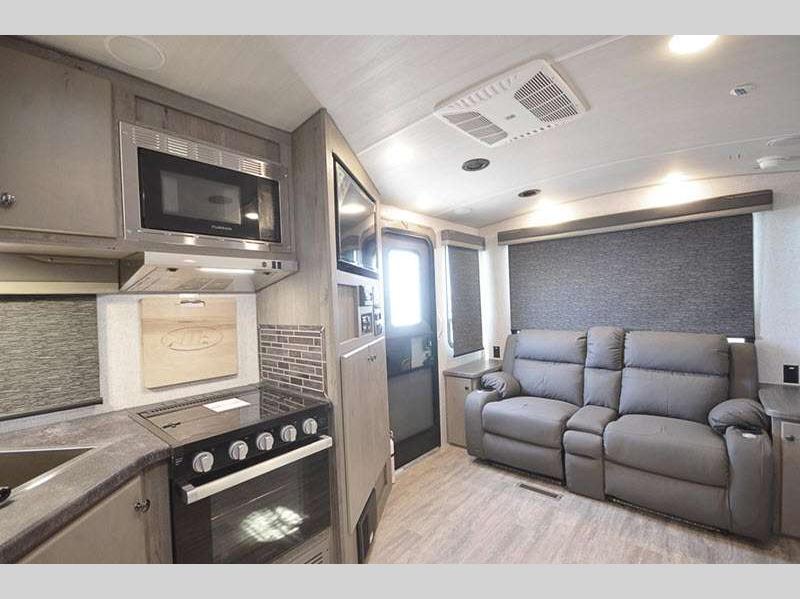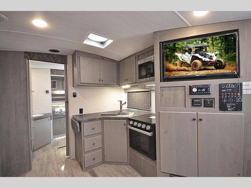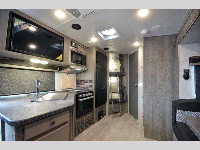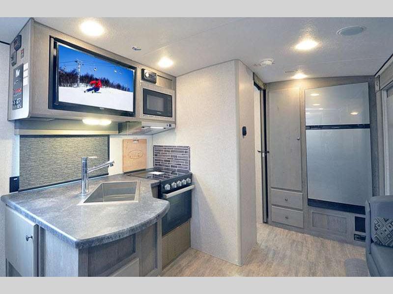 Sleeps 3 Length 22 ft 4 in Ext Width 8 ft Ext Height 11 ft 1 in Interior Color Desert Palms, Solitaire Azul Hitch Weight 589 lbs GVWR 7400 lbs Dry Weight 4766 lbs Cargo Capacity 2634 lbs Fresh Water Capacity 50 gals Grey Water Capacity 35 gals Black Water Capacity 36 gals Tire Size ST235/80R16 Furnace BTU 25000 btu Available Beds Queen Refrigerator Type 12V Refrigerator Size 10 cu ft Cooktop Burners 3 Number of Awnings 1 Axle Weight 4177 lbs LP Tank Capacity 60 lbs Water Heater Capacity 10 gal Water Heater Type DSI Gas/Electric Quick Recovery AC BTU 13500 btu Awning Info 12' 12V LED w/Adjustable Pitch Axle Count 2 Shower Type Standard Solar Wattage 400 watts -