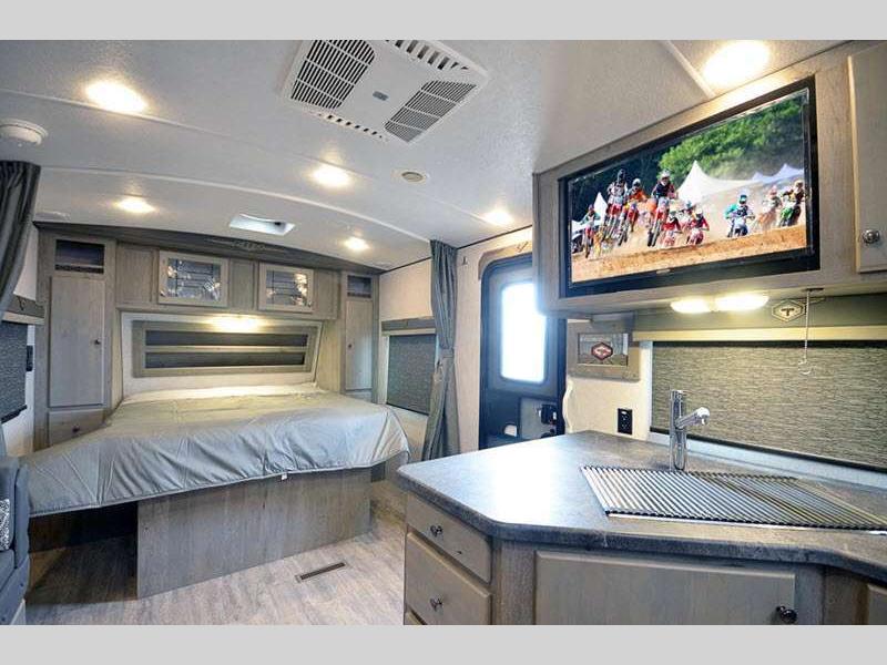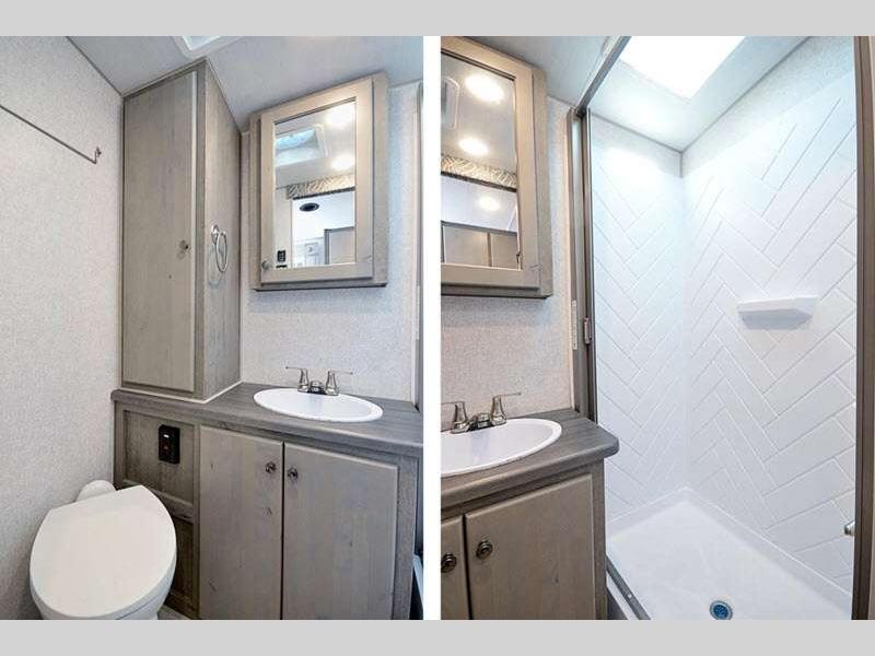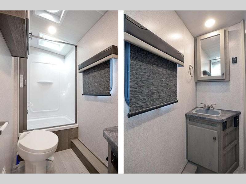 Each model includes a cathedral arched ceiling, roller bearing drawer glides, LED lighting, plus ample storage space for your personal belongings. Outside, you'll appreciate an exterior shower to wash off camp gear, along with a 12V LED awning with adjustable pitch for an inviting outdoor living space. Each model also includes the SolX 4-400 Watt Solar Package for off-grid capabilities!