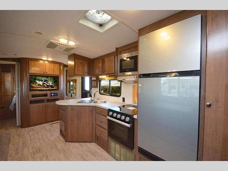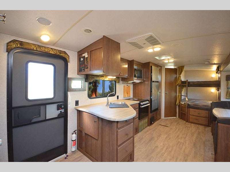 Sleeps 4 Slides 1 Length 29 ft 2 in Ext Width 8 ft Ext Height 11 ft 6 in Interior Color Desert Palms, Solitaire Azul Hitch Weight 755 lbs GVWR 9200 lbs Dry Weight 6845 lbs Cargo Capacity 2355 lbs Fresh Water Capacity 50 gals Grey Water Capacity 40 gals Black Water Capacity 35 gals Tire Size ST235/80R16 Furnace BTU 25000 btu Available Beds RV Queen Refrigerator Type 12V Refrigerator Size 10 cu ft Cooktop Burners 3 Number of Awnings 1 Axle Weight 6090 lbs LP Tank Capacity 60 lbs Water Heater Capacity 10 gal Water Heater Type Gas/Electric DSI with Quick Recovery AC BTU 13500 btu Awning Info 14' 6" 12V LED w/Adjustable Pitch Axle Count 2 Shower Type Standard Solar Wattage 400 watts Similar Floorplans